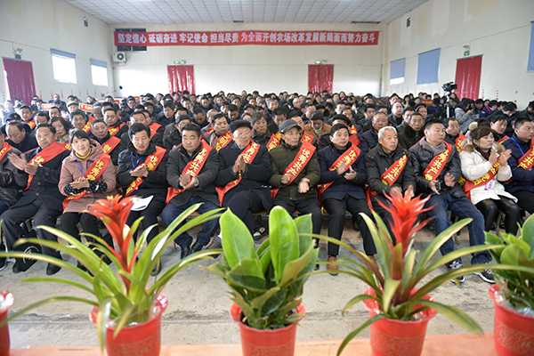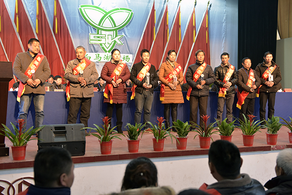 副場長王林宣讀了大會關(guān)于上述三個報告和兩份相關(guān)文件的決議,號召全場干群為實現(xiàn)2018年各項目標(biāo)任務(wù)而不懈努力。黨委副書記韓正光宣讀表彰決定,對2017年度成績突出的36個先進(jìn)單位、55個先進(jìn)個人或家庭進(jìn)行表彰并隆重頒獎。四個單位的主要負(fù)責(zé)人和創(chuàng)業(yè)創(chuàng)新先進(jìn)個人代表溫仕貴分別作了交流或表態(tài)發(fā)言。