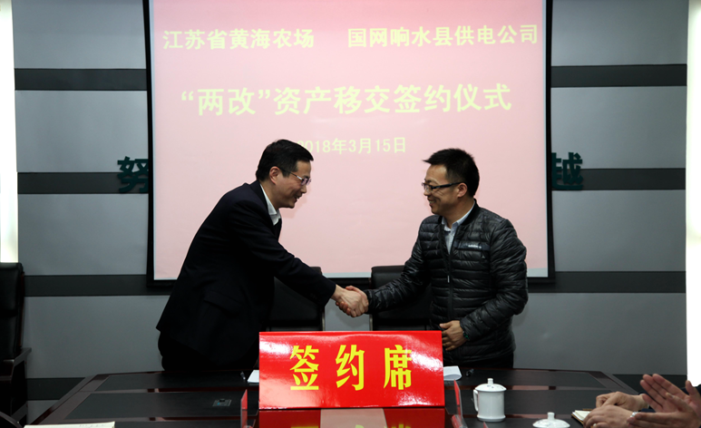 為貫徹落實(shí)國(guó)家和省委省政府及集團(tuán)公司黨委關(guān)于加快推進(jìn)農(nóng)場(chǎng)電力改造工作一系列決策部署,加快推進(jìn)黃海電力“兩改”工作。315日,黃海農(nóng)場(chǎng)與國(guó)網(wǎng)響水縣供電公司電力“兩改”資產(chǎn)移交簽約儀式在響水縣供電公司舉行,標(biāo)志著黃海電力“兩改”工作取得突破性的積極進(jìn)展,進(jìn)入職能接收、維修改造的實(shí)戰(zhàn)階段。黃海農(nóng)場(chǎng)黨委書記王亦勤、場(chǎng)長(zhǎng)單祥忠、副場(chǎng)長(zhǎng)薛亞林,響水供電公司黨委書記楊浩天、副總經(jīng)理沈曉東、王春雨共同出席簽約儀式。農(nóng)場(chǎng)和縣供電公司相關(guān)部室負(fù)責(zé)人參加了簽約儀式。