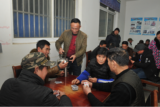 為了更好地服務居民,張強把家中電視機搬進了活動室,讓居民娛樂之余也不會錯過新聞節(jié)目。同時又買來電水壺和一次性紙杯,給來活動室娛樂的人倒茶添水。