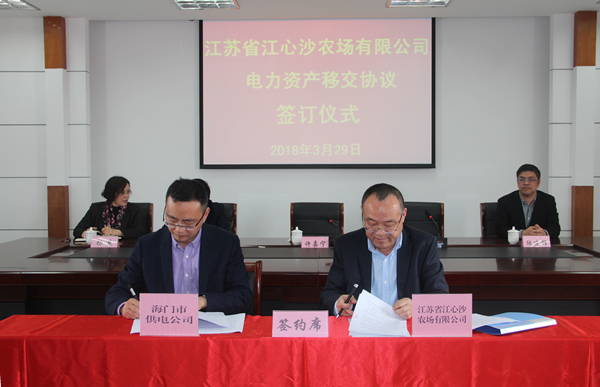 江心沙農(nóng)場與海門市供電公司簽訂電力資產(chǎn)移交協(xié)議