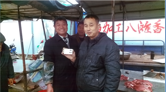這時,徐加才已經(jīng)將油條燒餅裝在塑料袋里,欲往仇冬生的口袋里硬揣,仇冬生急忙將它退回。兩人一送一退,禮讓了好幾個回合。仇冬生看這樣推讓下去也不是個辦法,于是,他委婉地說:“您的情我領(lǐng)下了。不過,我從小到大不喜歡吃油條、燒餅。這樣,我把您送給我的這份油條燒餅存您這里,您幫我出售,過幾天我到您這里來取‘錢’”。仇冬生一番詼諧幽默的語言,頓時將失主徐加才給逗樂了。徐加才對仇冬生說的幽默話心領(lǐng)神會,執(zhí)意要答謝仇冬生的念頭也打消了。圖為4月12日上午,仇冬生將拾到的身份證交還給失主徐加才。