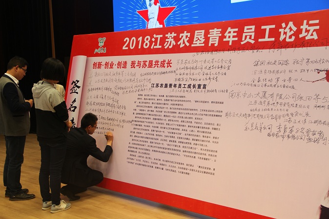 此次論壇活動取得了建設(shè)性成果,與會全體青年員工代表認真審議并通過了《江蘇農(nóng)墾青年員工成長宣言》,姚準明、佟曉廷以及與會全體青年員工在成長宣言簽名墻、簽名簿上鄭重的簽下了自己的名字。論壇的成功舉辦,充分體現(xiàn)了集團公司黨委對青年員工的關(guān)愛和培養(yǎng),必將使軍墾文化、農(nóng)墾精神薪火傳承;必將增強青年員工對農(nóng)墾的認同感、歸屬感、榮譽感;必將更加堅定青年員工立志獻身農(nóng)墾、扎根農(nóng)墾、建設(shè)農(nóng)墾的信心;必將促使青年員工在新時代更加愛崗敬業(yè)、成長成才。作為新時代的江蘇農(nóng)墾青年,紛紛表示一定以“勇?lián)鷼v史使命,勇立時代潮頭”為己任,不忘初心,牢記使命,砥礪前行,久久為功,為加快建設(shè)一流現(xiàn)代農(nóng)業(yè)企業(yè)集團和實現(xiàn)“百年蘇墾”的農(nóng)墾夢貢獻自己的青春、智慧和力量,與時代同奮進,與農(nóng)墾共輝煌!
