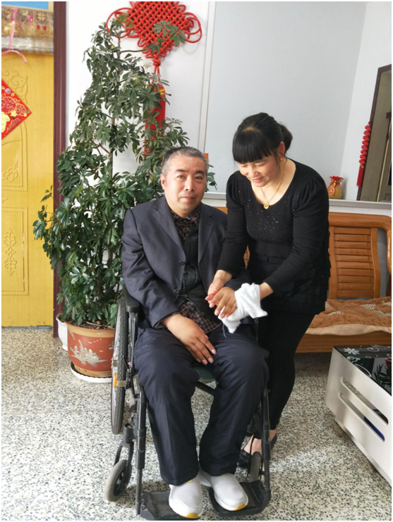 2003年1月2日早晨,一場意外的到來徹底打碎了苗新平平靜祥和的生活,丈夫王慶中在東灘工區(qū)爬電線桿進行電工作業(yè)時,不慎從高處跌落,導致頸椎嚴重摔傷,突如其來的打擊猶如晴天霹靂,經過一個多月的搶救,丈夫的性命總算保住了,卻落下了四肢癱瘓后遺癥,日常起居只能靠坐輪椅。經殘疾鑒定,王慶中為肢體殘疾一級。為了專心照顧丈夫,苗新平辭去了工作,給丈夫治病家里的積蓄很快都花完了,還欠了一屁股的債。盡管內心忍受著巨大的煎熬,但她每天還是面帶微笑開導、安慰丈夫,哄他開心。癱瘓在床的丈夫生活不能自理,年邁體弱的公婆也需要有人照顧,這讓苗新平憧憬的幸福夢變得支離破碎。然而,生活中的不幸并沒有壓垮苗新平,反而讓她更加堅強地面對生活,重新?lián)P起生活的風帆。從此,當別人早已進入夢鄉(xiāng)的時候,苗新平還在忙著收拾家務;當別人睡眼朦朧地醒來,苗新平早已為家人準備好了飯菜。由于丈夫長期癱瘓在床,大小便失禁,生活上完全不能自理,她不離不棄,不厭其煩,精心侍候,每天總是按時為丈夫擦背按摩、端屎端尿、喂飯喂藥、翻身擦洗,為了減輕丈夫的病痛、消除心理壓力,天氣好的時候,苗新平還經常推著坐在輪椅上的丈夫到公園或周邊轉轉,夫妻兩人溫馨默契。十五年來,在苗新平的精心照顧下,丈夫全身沒起過褥瘡,沒生過痱子,沒摔過跤,還慢慢地長胖了。