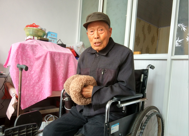 這名已經(jīng)91歲高齡的老人名叫楊文才,是江蘇農(nóng)墾淮海農(nóng)場建國前的離休老干部,因為抗美援朝,195123歲的楊文才毅然報名參軍,后因戰(zhàn)局的扭轉(zhuǎn),他從102師改編成農(nóng)建四師,來到淮海農(nóng)場屯墾戍邊。從1953年直到離休前,楊文才一直是單位的會計。現(xiàn)在坐著輪椅來到藤架下休息聊天是他每天的必修課。