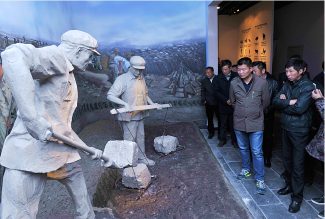 在新征程中勿忘“大鍬、扁擔(dān)”,就是要求我們要接過軍墾先輩們的精神接力棒,以腳踏實地的干勁,以舍我其誰的擔(dān)當(dāng),來為了讓更多的職工群眾能過上美好幸福生活的向往。特別是在時下廣泛開展的“不忘初心、牢記使命”的主題教育中,更需要我們深入貫徹黨的十九大精神,牢固樹立以人民為中心的思想,一切為了人民,一切依靠人民,唯有這樣,我們才能在新征程的道路上,無往而不勝。圖為客人們在農(nóng)建四師陳列館中觀看以江希友和仇泉原型創(chuàng)作的“江大鍬”和“仇大筐”雕塑模型。