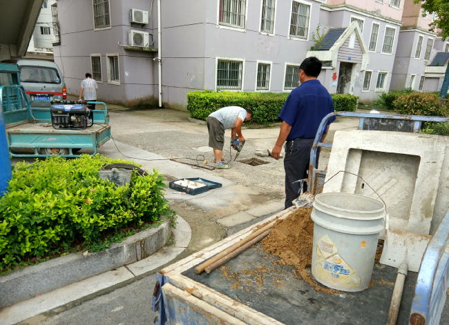 今天早晨6點40分,筆者看到,就有兩位師傅帶著修理工具和材料來到了窨井的損壞現(xiàn)場,動作麻利地進(jìn)行程序化的修理修理工作。