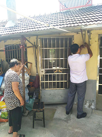 7月28日早上9點,在新洋農(nóng)場有限公司城中居委會農(nóng)業(yè)中心小區(qū)王奶奶家門前,城中居委會工作人員陸齊福正拿著錘子,給老人家固定門前的擋雨棚,室外溫度高達32度,汗水順著他的額頭一勁兒往下淌,他卻顧不上去擦。這是該公司關愛孤寡老人的表現(xiàn)一隅。