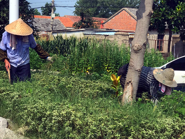 持續(xù)的高溫,下午二點的室外溫度達(dá)到38度左右,但在三河場部主干道兩側(cè)的綠化島內(nèi),環(huán)衛(wèi)工人們?nèi)匀欢c準(zhǔn)時到崗,由于夏季雜草生長極快,綠化島內(nèi)的雜草已經(jīng)爬上了島內(nèi)的觀光苗木,為了不影響美感,大家便利用清掃馬路之余時間,對島內(nèi)的雜草進(jìn)行人工拔除。8月10日下午二點十分,筆者在農(nóng)場醫(yī)院門前的綠化島內(nèi)看到,環(huán)衛(wèi)工人們手戴著手套,戴著草帽,由于天氣太熱,大家都沒有戴口罩,而是每人的脖子上圍著條毛巾用于擦拭不停從臉上的汗水,衣服已經(jīng)被汗水浸濕透了,但大家仍然認(rèn)真細(xì)致的在拔除每一棵雜草,并不時的回頭看有沒有遺漏的。當(dāng)筆者問他們?yōu)槭裁床槐荛_高溫拔除時,一位環(huán)衛(wèi)工人擦擦臉上的汗說,早晚涼時間他們還要清掃馬路,時間再不抓緊點,草越長越高就難看了,爭取兩天時間把兩邊島內(nèi)的草都拔干凈,這就是三河環(huán)衛(wèi)工人的情懷,不言苦,不說累,用汗水描繪著三河的每一寸美麗畫圈。