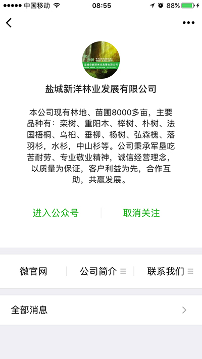 “你好,歡迎關(guān)注新洋林業(yè)有限公司!”日前,“鹽城市新洋林業(yè)有限公司”微信公眾號(hào)正式上線(xiàn)。