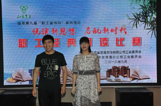 任超榮和欒艷彥作為淮海農(nóng)場在2013年引進(jìn)的大學(xué)生,兩年后在農(nóng)場土地的滋潤下喜結(jié)連理,成為來淮海大學(xué)生當(dāng)中為數(shù)不多的夫婦,多年來他們在各自的工作崗位上互相鼓勵(lì),相互支持,取得了令人滿意的業(yè)績,并且近年來他們夫婦一直是淮海工會(huì)參與各項(xiàng)文藝活動(dòng)的積極分子。在淮海工會(huì)舉辦的“悅讀新思想 啟航新時(shí)代”主題活動(dòng)中,任超龍夫婦倆積極報(bào)名參賽,并精心組織材料,利用業(yè)余時(shí)間熟悉詩篇中主人公的思想境界,并在此基礎(chǔ)上夫婦倆一起進(jìn)行背誦、朗讀和動(dòng)作、效果展示,相互當(dāng)好各自誦讀的第一名觀眾和裁判,從而也讓他們夫婦以較高的分?jǐn)?shù)雙雙進(jìn)入第二名。