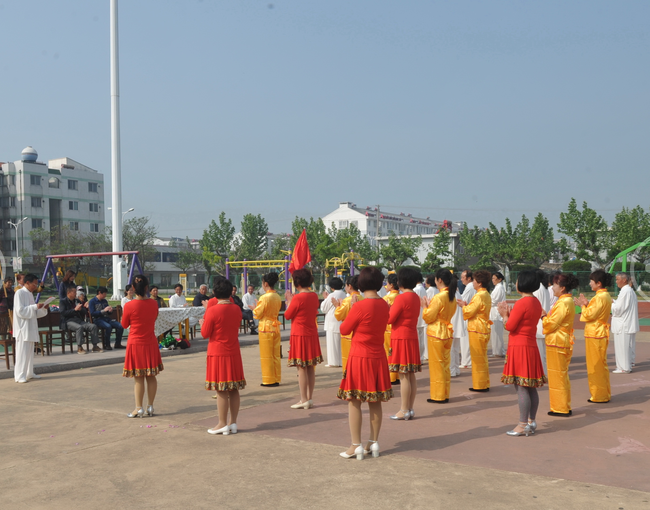 “現(xiàn)在我們早晨正常要操練近兩個小時太極運(yùn)動,每年還正常到射陽縣老齡協(xié)會參加正常的太極運(yùn)動展演,有時還要到鄰近的鄉(xiāng)鎮(zhèn)去切磋太極技藝。”擔(dān)任太極隊(duì)隊(duì)長的胡建軍說:“太極運(yùn)動讓我們這幫老字號的兄弟姐妹們有了強(qiáng)健的身體,也煥發(fā)了自信,每年我們還要組織太極隊(duì)員像那些小青年平,到周邊景點(diǎn)去旅游,開心開心,這得要好好感謝趙梅生教練這么多年來的奉獻(xiàn)精神喲!”