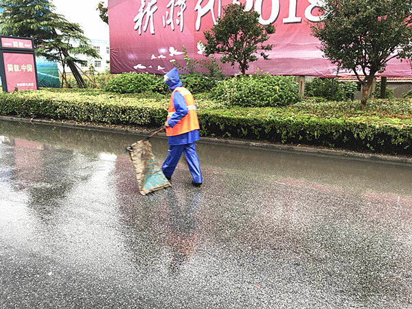 是日,盡管下暴雨,但新洋環(huán)衛(wèi)工人們還是像往常一樣,早上六點(diǎn)多就上班了,他們身著雨衣雨褲,外面套著環(huán)衛(wèi)工人工作服,在各自區(qū)域行走,雨水一直下,夾著大豐,吹落了樹上的葉子,與路上的雨水和在一起,給環(huán)衛(wèi)工人清掃增加了難度,但環(huán)衛(wèi)工人們不辭勞苦,十分認(rèn)真地清掃干凈。到了下午,雨停了,路上的落葉變多了,但環(huán)衛(wèi)工人們沒有絲毫抱怨,不厭其煩地再次清掃。