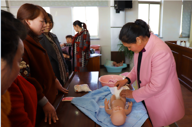 經(jīng)過農(nóng)場各級領(lǐng)導(dǎo)的關(guān)心和支持,我的干勁也很大,終于在2017年底前成功甩掉了貧困戶的帽子。圖為李海霞在去年在新洋農(nóng)場協(xié)辦的月嫂培訓(xùn)班上的鏡頭。