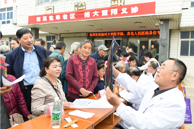 今年的重陽節(jié)是分外溫暖。雖然當(dāng)天下午來自揚(yáng)州大學(xué)8名離退休的老專家只有2個(gè)半小時(shí)的義診活動(dòng)時(shí)間,但淮海農(nóng)場社區(qū)還是有300多人前來參加診治,特別是老年朋友們接受了病史分析、健康檢查和咨詢問診之后,個(gè)個(gè)喜逐顏開,開心不已,他們紛紛表示此次義診對他們的幫助很大,感謝來自揚(yáng)州大學(xué)醫(yī)學(xué)院的離退休專家來淮海提供的醫(yī)療服務(wù),不僅為他們的身體健康提供了保障,更了解了如何養(yǎng)生和保健的知識,讓他們在重陽節(jié)這一天,感受到晚年生活的溫暖和幸福。