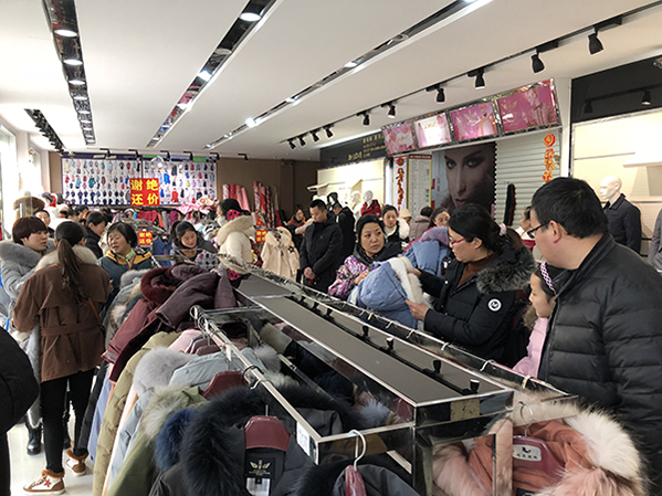 元旦期間,新洋農(nóng)場(chǎng)服裝一條街車來人往、熱鬧非凡,持續(xù)走低的氣溫使得人們紛紛購買羽絨服等各類冬裝御寒過冬,場(chǎng)域內(nèi)多家羽絨服專賣店迎來周邊縣市、鄉(xiāng)鎮(zhèn)的顧客選購羽絨服裝,農(nóng)場(chǎng)又迎來一個(gè)羽絨服“銷售旺季”。