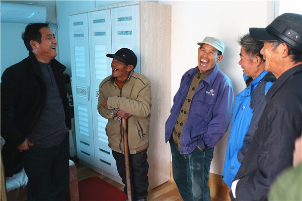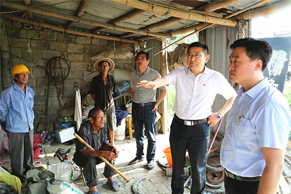 王書記與隨行人員現(xiàn)場(chǎng)商議后,覺(jué)得李同井孤身一人居住,又身體殘疾,靠政府補(bǔ)貼勉強(qiáng)度日,根本沒(méi)有余錢修繕?lè)课?,一定要想辦法,改變李同井生活現(xiàn)狀,讓他過(guò)個(gè)舒適晚年。為此大家一致建議為其修建安全、干凈、明亮的新房。手握拐杖腿腳不便的李同井聽(tīng)后,激動(dòng)的站了起來(lái),連聲說(shuō):“感謝農(nóng)場(chǎng)黨委的關(guān)心,感謝各位領(lǐng)導(dǎo)的照顧。