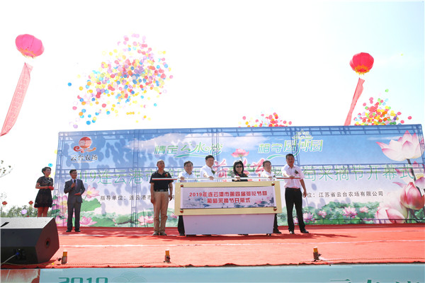 青山毓黛迎賓客,綠水含情荷飄香。又到了荷花盛開、荷香四溢的美好時節(jié),7月20日上午,由連云港市文化廣電和旅游局、連云港高新技術產(chǎn)業(yè)開發(fā)區(qū)指導,江蘇省云臺農(nóng)場有限公司主辦的“2019連云港市第四屆荷花節(jié)暨葡萄采摘節(jié)”在云臺農(nóng)場“云水灣”濕地公園盛大開幕。連云港市副市長陳書軍,省農(nóng)墾集團黨委委員、總會計師劉克英,高新區(qū)黨工委書記陳佑龍等市、區(qū)相關單位部門,省農(nóng)墾系統(tǒng)部分兄弟單位、陜西省農(nóng)墾大荔農(nóng)場公司等領導,農(nóng)場公司黨委書記、董事長、總經(jīng)理劉衛(wèi)華,黨委副書記宋光鋒、副總經(jīng)理黃祖兵等場領導班子成員及近萬名游客參加了開幕式。