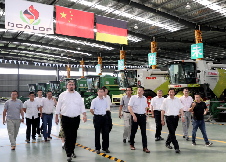 為進一步推進中德作物生產與農業(yè)技術示范園項目建設,了解示范園項目最新進展、技術合作等情況。8月22日,國家農業(yè)農村部對外經濟合作中心主任楊易一行到黃海調研指導工作。集團公司總經理、蘇墾農發(fā)股份公司董事長胡兆輝陪同調研并介紹情況,蘇墾農發(fā)副總裁陳培紅、黃海農場公司黨委書記、蘇墾農發(fā)黃海分公司總經理、中德示范園主任賀在銳,黃海農場公司董事長、總經理李衛(wèi)東,中德示范園副主任何彥平,科樂收農機公司副總經理、銷售總監(jiān)西蒙等陪同。