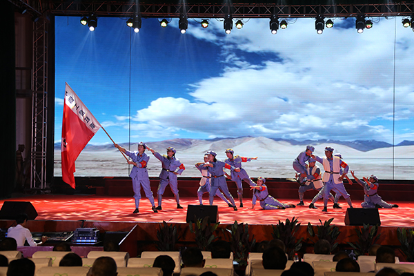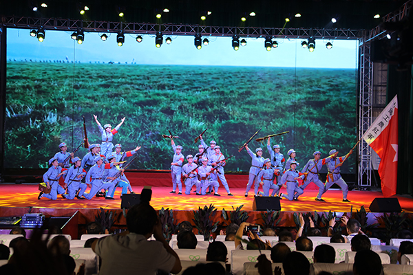 新洋農(nóng)場(chǎng)公司的情景劇《紅軍不怕遠(yuǎn)征難》和濱淮農(nóng)場(chǎng)公司的歌舞劇《長(zhǎng)征組歌》,以音樂(lè)、舞蹈、畫(huà)面相結(jié)合,歌頌了中國(guó)紅軍的偉大長(zhǎng)征精神,表現(xiàn)了人民軍隊(duì)在革命年代為建設(shè)新中國(guó)流血犧牲、歷盡艱難險(xiǎn)阻的感人場(chǎng)面。