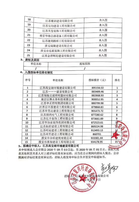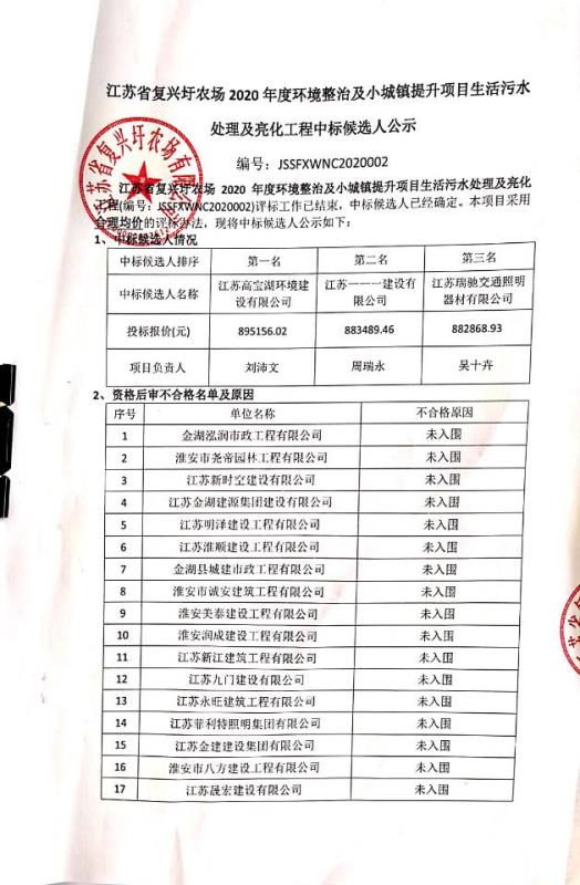江蘇省復(fù)興圩農(nóng)場(chǎng)2020年度環(huán)境整治及小城鎮(zhèn)提升項(xiàng)目生活污水處理及亮化工程中標(biāo)候選人公示