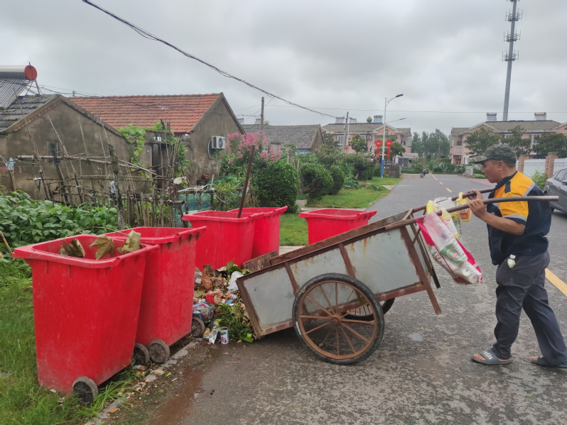 昨天下午,我在淮海農(nóng)場振興路一側(cè)看到,農(nóng)場城西環(huán)衛(wèi)工工何亮明在汗涔涔地揮舞著鐵锨,將一家一戶收集并用拖車拖來的垃圾,又鏟到路旁垃圾桶里的鏡頭。聞著夏日垃圾散發(fā)出來的異味,我的心里不禁感嘆著,一個路人對這刺鼻的臭味異常敏感,何況一個每天3個多小時中,泡在這味中的環(huán)衛(wèi)工人。也正是他們的辛勤付出,換來了農(nóng)場環(huán)境的美好和好心情。