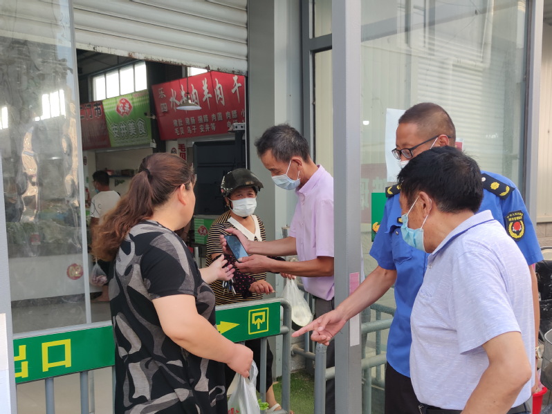 “還請(qǐng)你輸入下密碼?!闭f(shuō)著,曹習(xí)生將手機(jī)遞到了買(mǎi)菜的居民手中。整個(gè)過(guò)程僅幾分鐘光景,就化解了居民沒(méi)戴口罩進(jìn)出菜市場(chǎng)的難題。