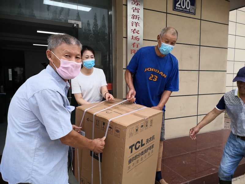 一家家、一戶戶陸續(xù)來到社區(qū)簽字領(lǐng)取家電。殘疾人陳雪芬父親接過微波爐、電飯煲感動地說:“感謝農(nóng)場、感謝社區(qū)幫我們爭取的免費家電。陳自力從小智力重殘,母親雙腿行動不便,家庭困難,陳自力的爺爺雙手扶著洗衣機感動地說:“現(xiàn)在黨的政策好,農(nóng)場領(lǐng)導(dǎo)也好,我們?nèi)腋兄x社區(qū)、感謝你們”。