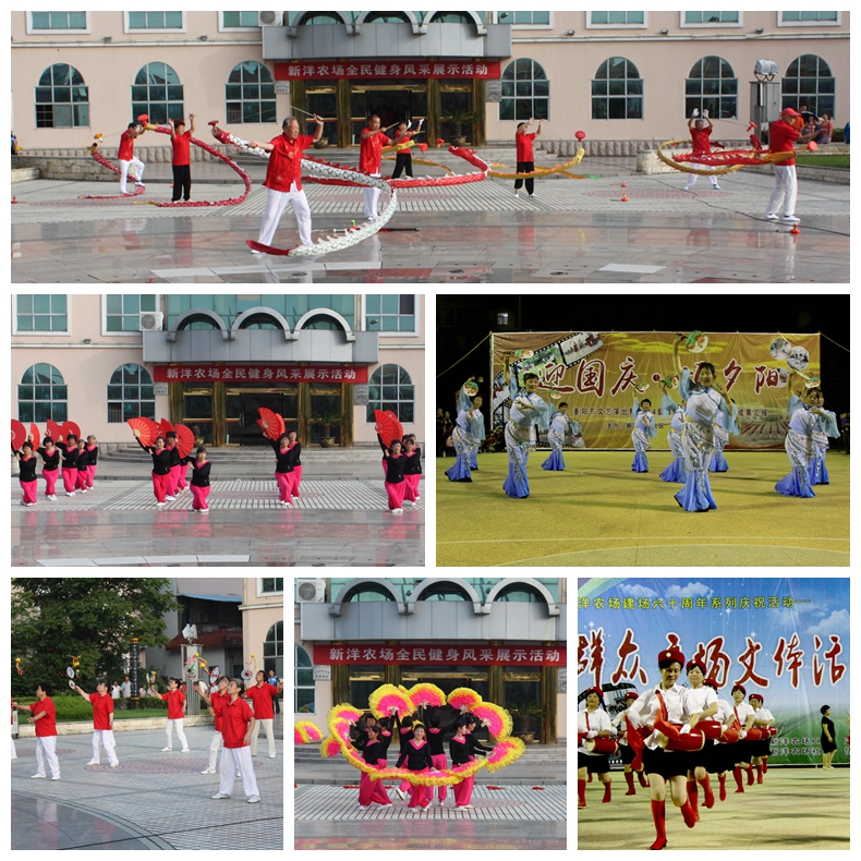 為了滿(mǎn)足退休職工的文化生活的需要,農(nóng)場(chǎng)建起了文化活動(dòng)中心、文體活動(dòng)廣場(chǎng)和居家養(yǎng)老服務(wù)中心,各個(gè)住宅區(qū)都有一定的活動(dòng)場(chǎng)所,老年人在這里參與打腰鼓、擊劍、扇子舞、抖空竹、太極拳、佳木斯快樂(lè)舞步等各種活動(dòng),鍛煉身體,愉悅心情。農(nóng)場(chǎng)成立了書(shū)法攝影協(xié)會(huì)、讀書(shū)協(xié)會(huì)、象棋協(xié)會(huì)、舞蹈協(xié)會(huì)、抖空竹協(xié)會(huì)、門(mén)球協(xié)會(huì)等群眾文化團(tuán)體,很多老年人參加了協(xié)會(huì),有的還成為協(xié)會(huì)的骨干,他們?cè)趨f(xié)會(huì)里發(fā)揮自己的聰明才智,尋找到各自的樂(lè)趣,給協(xié)會(huì)增添了活力。農(nóng)場(chǎng)經(jīng)常組織各種文體活動(dòng),很多老年人與年輕人同臺(tái)表演,不少人表現(xiàn)不凡,贏得滿(mǎn)堂喝彩。豐富多彩的文化生活,使新洋的老年人煥發(fā)了青春。有關(guān)協(xié)會(huì)經(jīng)常選派選手參加集團(tuán)公司和省、市、縣舉辦的攝影、書(shū)法、舞蹈、門(mén)球、抖空竹、象棋等比賽,總能取得較好的名次。