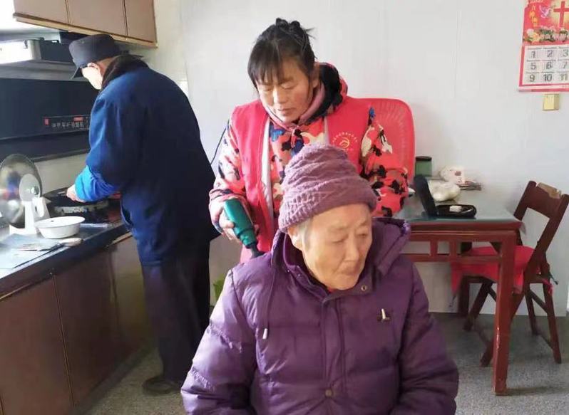 我們在金奶奶家看到,身著志愿服裝的沈善兵、張榮芳兩人,他們在麻利地為老人進(jìn)行健康體檢、理療等服務(wù),同時(shí)為老人家整理床鋪、打掃廚房、刷洗積塵等衛(wèi)生服務(wù)工作,讓金奶奶老兩口開心不已之時(shí),又感嘆著兩位志愿者的傾情服務(wù),讓他們有了兒女在家的感覺。