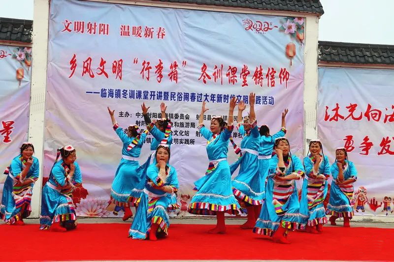 119日下午,雖然戶外天氣陰沉,寒氣逼人,但在江蘇省射陽縣臨海鎮(zhèn)五岸社區(qū)文化廣場大舞臺上,呈現(xiàn)出暖意濃濃的態(tài)勢,射陽縣臨海鎮(zhèn)黨委、鎮(zhèn)政府和射陽縣文化廣電和旅游局主辦,鎮(zhèn)新時代文明實踐所、綜合文化站、五岸社區(qū)承辦的冬訓課堂開講暨民俗鬧春過大年新時代文明實踐活動會上,卻出現(xiàn)了兩支由淮海農場文藝志愿者組成的表演隊伍,讓鄉(xiāng)村黨員冬訓課堂呈現(xiàn)出場鄉(xiāng)文藝共建,共同唱響黨建品牌的合作之旅。