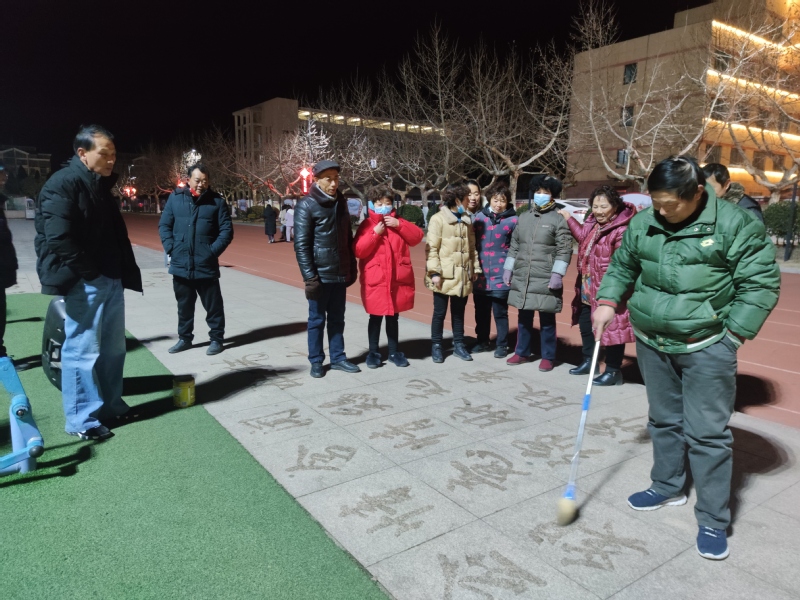 說起寫“地書”的好處,田海燕說,他每天晚上都要在廣場上、公園里或是路道邊練習(xí)一個多小時,這樣既有利于保健養(yǎng)生,也有利于益智養(yǎng)性,在回憶名人詩詞和偉人風采中,展現(xiàn)博大精深的中華文化,也得到了眾多觀看者的稱頌,這可謂是一舉多得。