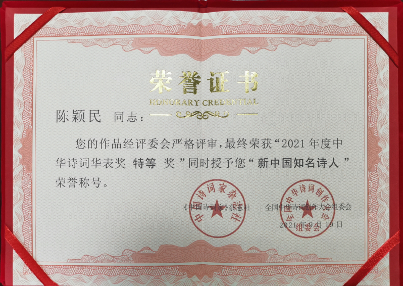 新洋:陳穎民榮獲“2021年度中華詩(shī)詞華表獎(jiǎng)特等獎(jiǎng)”