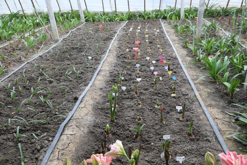 在對朱頂紅近乎狂熱的的癡迷中,周恒銀用了10年時(shí)間,引進(jìn)新品種和雜交選育,儲(chǔ)備收藏了現(xiàn)今近200個(gè)品種,其中僅自己培育的就達(dá)到50個(gè)新品種。通過播種、鱗片扦插、分株側(cè)球三駕車并進(jìn),苗、球齊發(fā)展、同出售。僅2021年銷售幼苗就達(dá)10萬株,種球1萬粒,鮮切花萬余枝,全年供應(yīng)上市。力爭在2022年培育朱頂紅種苗15萬株,年銷鮮切花2萬枝,銷售種球2萬粒,個(gè)人年收入50萬元。