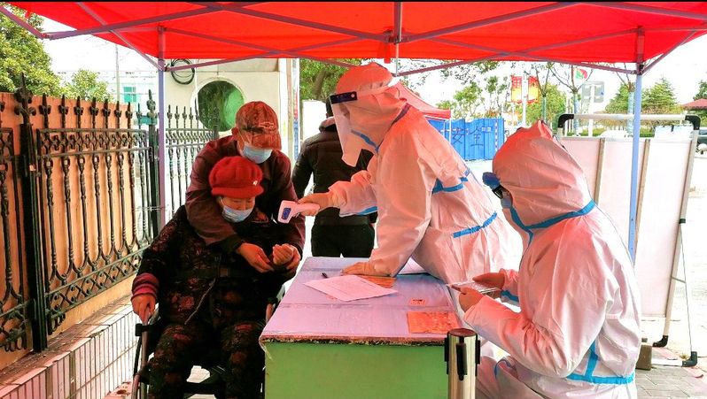 在寶應(yīng)湖農(nóng)場固定核酸檢測點,有這樣一群人,他們身穿白色防護服忙著測溫掃碼、維持秩序、采集信息……,“您好請掃一下場所碼,近期沒有外出吧?”“您好,我給您測量一下體溫”“請大家保持一米線,核酸做完及時離開,不交談不聚集”一句句叮囑傳遞著疫情期間的濃濃關(guān)懷,在大家的耳畔久久回蕩。