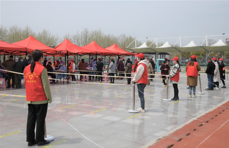 連日來,在淮海農(nóng)場職工休閑體育運動廣場和農(nóng)場文化廣場上,隨處可見一抹“志愿紅”,他們當中,有的手持小喇叭,一遍又一遍重復(fù)著“佩戴好口罩,保持好距離”的話語;有的人手一把測溫槍,堅守在卡口點不厭其煩地測量著經(jīng)過人的體溫;有的前后跑動著,為老年人、殘疾人提供便民服務(wù);有的變身“大白”“淺藍”,為核酸檢測采樣前進行掃碼登記工作……