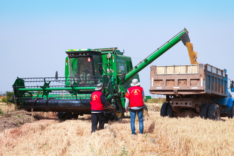 “三夏”大忙期間時間緊、任務(wù)重,隨著小麥陸續(xù)成熟,云臺未雨綢繆,黨員干部、管理人員、青年團(tuán)員等組成“三夏”生產(chǎn)志愿服務(wù)隊,全部下沉至各大隊和生產(chǎn)區(qū),通過采取有力管理措施,科學(xué)調(diào)配人員和農(nóng)機(jī)力量,解決“三夏”生產(chǎn)問題,有效保障三夏”農(nóng)業(yè)生產(chǎn)工作。在田間地頭,志愿者們正在指揮著收割機(jī),安排組織統(tǒng)一收割,盡管烈日當(dāng)頭、汗流浹背,但大家投身“三夏”的熱情卻依然不減,確保應(yīng)收盡收、顆粒歸倉;在各大隊曬場,黨員志愿者們充分發(fā)揮先鋒模范作用,大家搶抓天氣晴好有利時機(jī),拿起工具在曬場中揚麥,并根據(jù)收割進(jìn)度、曬場壓力,制定了一套科學(xué)完整的烘干入庫方案,保障烘干工作“不斷環(huán)”,“三夏”農(nóng)忙“不掉鏈”;“三夏”期間安全生產(chǎn)最重要,志愿服務(wù)隊化身安全員,提前對機(jī)架人員進(jìn)行安全培訓(xùn),持續(xù)對麥田進(jìn)行巡邏排險,消除各類隱患,并分成4組小分隊,夜間值班值守對秸稈禁燒情況進(jìn)行檢查,保證“不點一把火,不冒一股煙”,確保安全生產(chǎn)無事故。