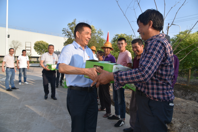 在倉儲(chǔ)部門口,公司黨委書記、董事長(zhǎng)郭世平,黨委副書記、總經(jīng)理吳善河率公司領(lǐng)導(dǎo)班子成員為89名勞務(wù)外包一線工作人員送去了清甜涼爽的黃金瓜,同時(shí)親切地詢問了一線員工的身體狀況和工作情況,對(duì)他們的辛勤付出表示感謝,并千萬叮囑大家炎夏期間注意避暑、保重身體,合理安排工作時(shí)間,避開高溫酷暑時(shí)段,也希望他們能夠深刻感受到公司黨委的人文關(guān)懷和“在廠如同在家”的幸福感。