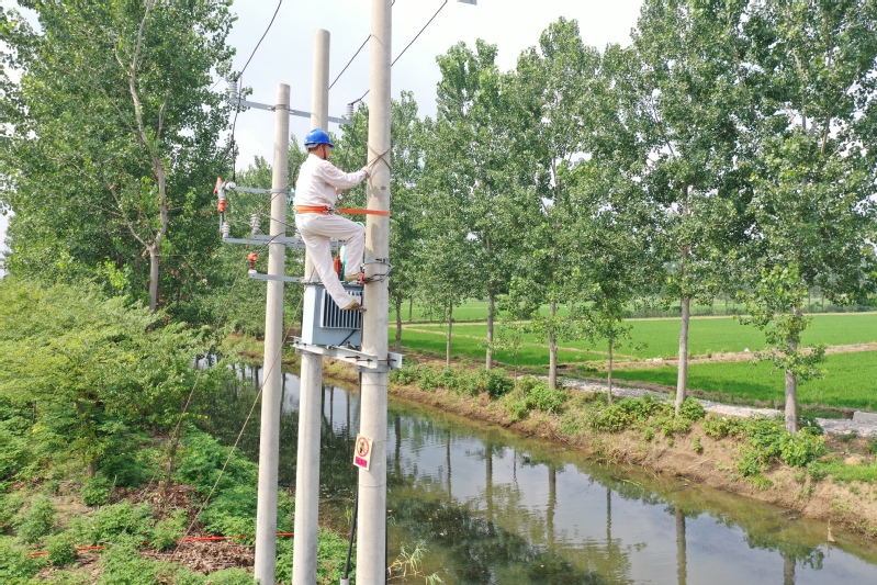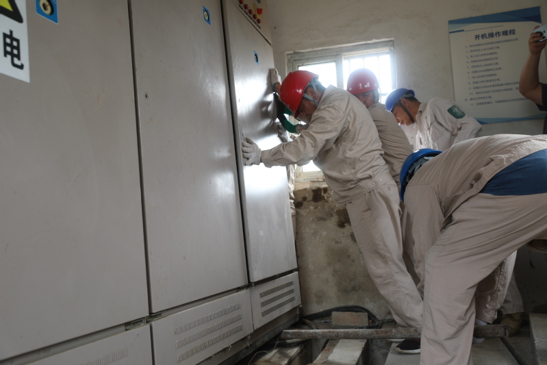 7月5日上午6點10分。“楊隊啊,8隊南電站不工作了!”接報后,凱惠電力寶應(yīng)湖分公司負(fù)責(zé)人楊加春立即組織3名電工趕到現(xiàn)場。經(jīng)排查,是電站開關(guān)柜壞了。落實開關(guān)柜、組織材料,他們兵分兩路共同推進。十余個電話打過后,趙愛華終于在農(nóng)機庫找到一臺型號匹配的開關(guān)柜。8點趙愛華等將登高工具、絕緣棒、電纜等材料運到電站。電工邵榮祥戴上安全帽,用絕緣棒將三相開關(guān)斷開,率先爬上高壓電桿,又和電工趙愛華、劉福相一起將壞電柜上的控制開關(guān)線一一拆除。不足9平方的泵房里,悶熱狹小,壓得人透不氣來,地處田間雜草叢中,蚊蟲直撞人臉,他們?nèi)徊活?,全神投入搶修?/span>不一會兒就大汗淋漓。拆除后,他們又與8隊工人一起把新柜抬進泵房。200多斤開關(guān)柜死沉死沉,狹小的空間嚴(yán)重限制作業(yè),一不小心趙愛華的手肘撞在了電柜上,一陣鉆心得痛。終于把柜子擺到合適位置,接線、拉電纜,電工們立即展開。11點,邵榮祥再次爬上高壓電桿,推上開關(guān),啟動控制,電站發(fā)出隆隆的歡唱。此時,溫度計顯示的室外溫度達到了43攝氏度,電工們已全身濕透。