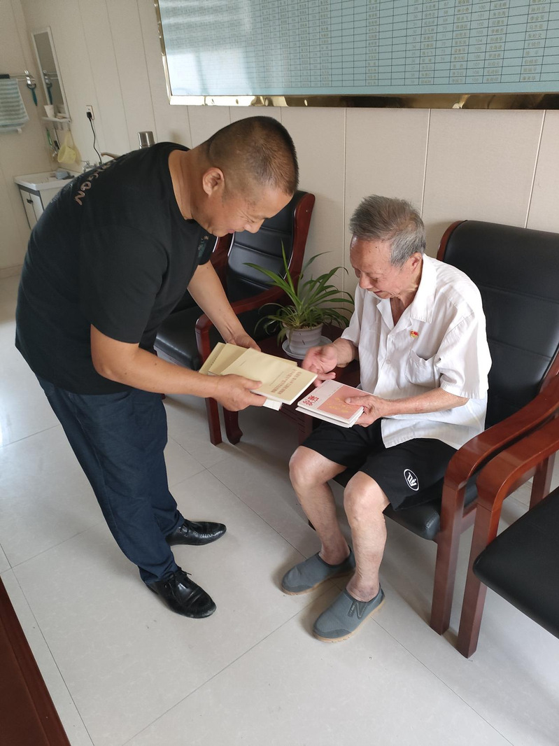 一番噓寒問暖,賴順祥說明了來意:“自己這幾年一直在外地兒子家生活,這次回農(nóng)場有兩件事要辦,一是回農(nóng)場收拾收拾自家的老房子,順便看看農(nóng)場近幾年的變化;二是自己在外多年,組織生活參加的少,懇請(qǐng)居委會(huì)能否幫我找些黨員學(xué)習(xí)資料,等回到兒子家的時(shí)候?qū)W習(xí)學(xué)習(xí)。”我聽后,先拿起一枚黨徽別再賴順祥胸前,然后吩咐辦事員陳旺將黨員活動(dòng)中心備用的一套黨員學(xué)習(xí)資料交到賴順祥手中??粗図樝槭峙踬Y料那開心的神情,我和陳旺兩人也為之動(dòng)容。