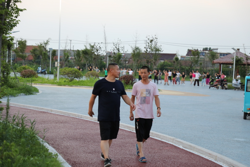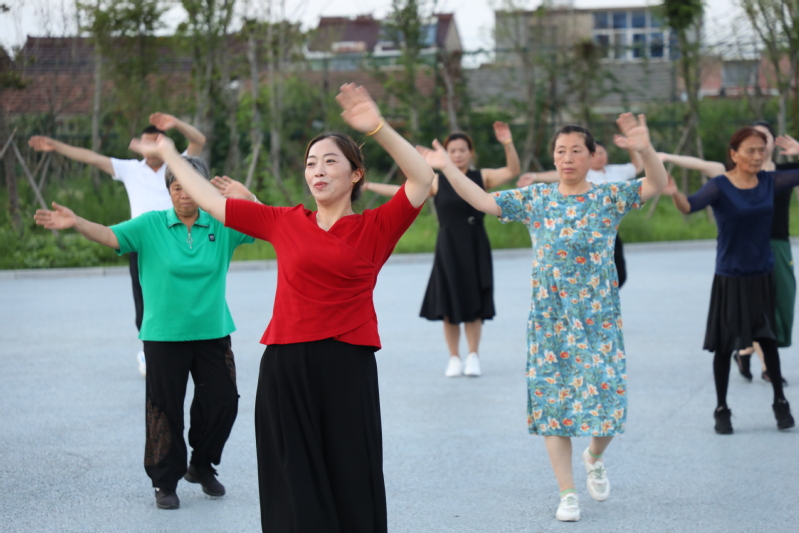 廣場舞臺上的愜意。每天傍晚6:30分,文化廣場都會傳出一陣陣歡快的音樂聲,伴隨著音樂的節(jié)奏,近百人舞動的身姿吸引著不少人跟著跳動比劃。自文化廣場建成后,農場公司特地在百姓大舞臺廣場安裝了接電裝置,為職工居民跳廣場舞提供方便,舞臺南側的高桿燈光明亮,舞者們的臉上洋溢著幸福的微笑。廣場建成后,退休職工黃淑英主動當起了廣場舞的老師,每天領著大家一起跳操跳舞健身,一支百余人的廣場舞隊每天活躍在文化廣場,帶動了更多的職工居民加入到跳舞健身的行列。黃淑英說:每晚跳舞健身后的大汗淋漓舒服極了,不僅使全身都得到了活動和放松,增強了體質,還增進了大家之間的感情。
