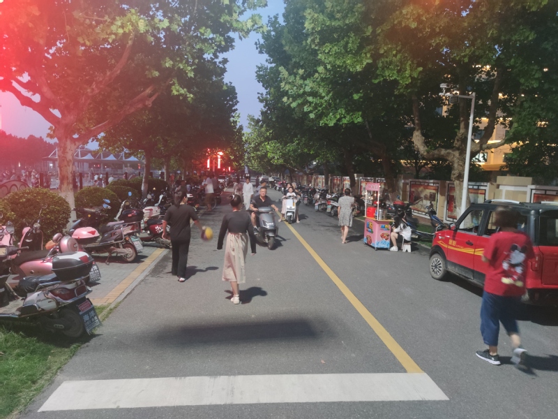 筆者站在廣場(chǎng)的門前看了一會(huì)兒后發(fā)現(xiàn),盡管每天傍晚來這里健身的人流有上千人,創(chuàng)業(yè)路一旁的電瓶車、摩托車車位也十分緊張,但我注意到,許多駕著小轎車來的居民,將車停放在寬闊的淮海路一側(cè)的車位上,不盲目駛往創(chuàng)業(yè)路上有限的小車位,而大多數(shù)開著輕便車輛的居民,看到出入口旁兩側(cè)車子較多的情況下,也會(huì)去很遠(yuǎn)的地方停車再跑回來,大家都能做到文明自覺,給他人方便,也是給自己方便。圖為有序停放的車輛。