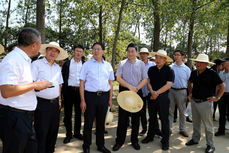 817日下午,省農(nóng)業(yè)農(nóng)村廳總農(nóng)藝師唐明珍以及省相關(guān)市縣農(nóng)業(yè)部門一行100余人組成的玉米大豆帶狀復(fù)合種植調(diào)研組到新曹觀摩,集團公司黨委委員、副總經(jīng)理王立新陪同。