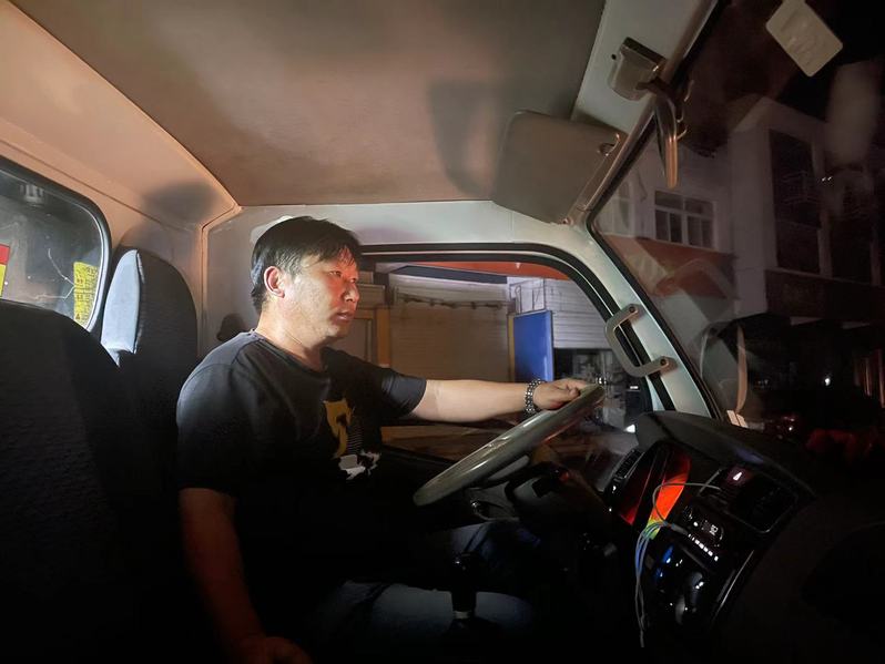 一個點(diǎn)一個點(diǎn)跑,一桶一桶裝,一車一車卸。戴玉剛對每個清運(yùn)點(diǎn)的位置熟悉得不能再熟悉,一天作業(yè)下來能跑40多公里。當(dāng)車?yán)锢幚硗戤?,他們又開始洗車刷車……等到都弄干凈了才回家吃點(diǎn)東西,再睡上一覺。