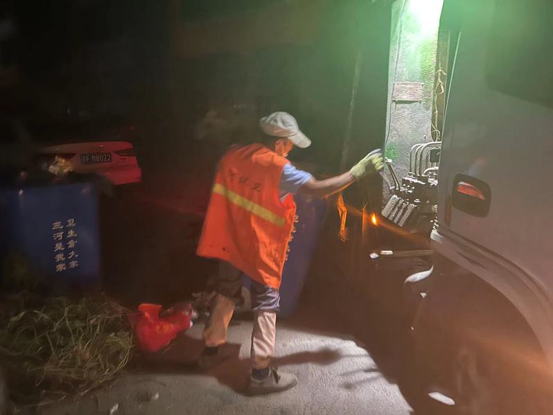 凌晨三點(diǎn)的三河,月色溫柔,滿天繁星。垃圾清運(yùn)車司機(jī)戴玉剛頭頂星光開始了一天的工作。