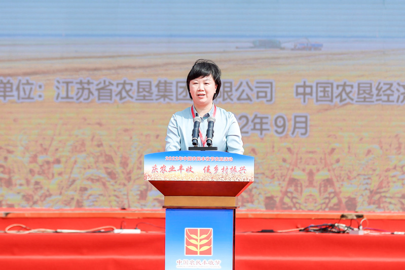 吳岡玉在致辭時說,近年來,射陽縣委縣政府與臨海農(nóng)場公司、新洋農(nóng)場公司、淮海農(nóng)場公司一起,認(rèn)真落實(shí)中央和省市關(guān)于農(nóng)墾改革發(fā)展部署要求,持續(xù)深化墾地融合發(fā)展,在推動智慧農(nóng)業(yè)發(fā)展、做強(qiáng)“射陽大米”品牌、建設(shè)美麗田園鄉(xiāng)村等方面成效顯著,江蘇農(nóng)墾麥芽入選2022年度江蘇省省長質(zhì)量獎,縣農(nóng)業(yè)農(nóng)村局獲評全省夏糧生產(chǎn)貢獻(xiàn)突出單位。射陽縣將以這次農(nóng)墾豐收活動為新起點(diǎn),錨定創(chuàng)建國家級農(nóng)業(yè)現(xiàn)代化示范區(qū)和省級農(nóng)業(yè)現(xiàn)代化先行區(qū)目標(biāo),聯(lián)合省農(nóng)墾集團(tuán)的資源、技術(shù)、市場等優(yōu)勢,推動駐射陽各農(nóng)場與縣屬各國有企業(yè)、友鄰鎮(zhèn)區(qū)一道,在推進(jìn)種業(yè)振興和高標(biāo)準(zhǔn)農(nóng)田建設(shè)方面共同發(fā)力,積極推進(jìn)“三品一標(biāo)”創(chuàng)建,合力打造江蘇東部沿海大糧倉、生態(tài)糧食大超市、鄉(xiāng)村休閑大花園,共同繪就新時代魚米之鄉(xiāng)的美麗畫卷。