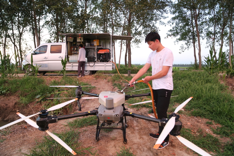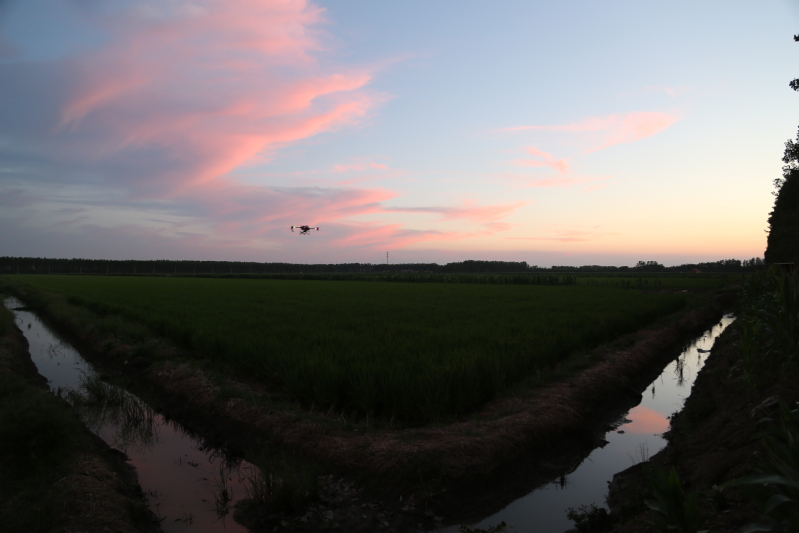 眼下正是水稻產(chǎn)量形成的關(guān)鍵時期,也是病蟲害高發(fā)時期。連日來,崗埠分公司組織農(nóng)業(yè)科、生產(chǎn)區(qū)農(nóng)技人員和大隊管理員,著眼紋枯病、稻曲病、稻縱卷葉螟、稻飛虱等高發(fā)病蟲害,深入田間展開排查統(tǒng)計,分類施策,科學(xué)開展肥水管理和綠色防控,抓好4.5萬畝水稻的穗期管理工作?!盁o人機(jī)夜間對水稻進(jìn)行病蟲害綜合防治作業(yè),避開白天高溫作業(yè)風(fēng)險,大大提升作業(yè)效率,一臺無人機(jī)每小時可噴灑150畝,有力加速防治進(jìn)程?!睄彶悍止巨r(nóng)業(yè)中心負(fù)責(zé)人表示,無人機(jī)飛防不僅作業(yè)效率快,防治效果好,減少農(nóng)藥使用量,降低農(nóng)業(yè)生產(chǎn)成本,且能大大降低勞動強(qiáng)度,一舉多得。當(dāng)前正是穗期水稻病蟲害綜合防治關(guān)鍵節(jié)點,分公司共組織無人機(jī)40余臺,采取夜間操作,確保在規(guī)定防治時間內(nèi)完成防治任務(wù),為秋糧豐收打好基礎(chǔ)。