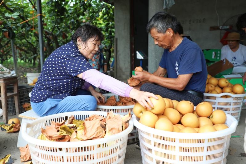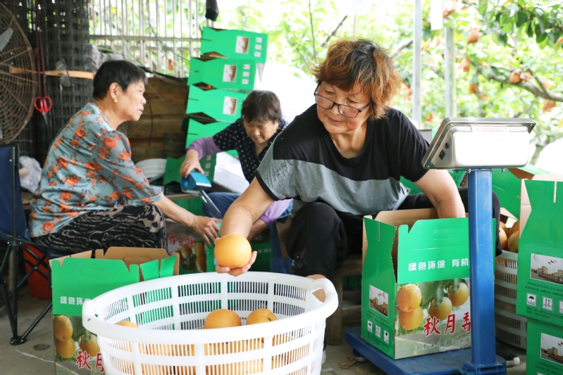 近日,江心沙農(nóng)場“明星水果”秋月梨、陽光玫瑰等火爆上市,迎來海量訂單,僅兩日就售出2000箱,20000余斤。據(jù)介紹,此次訂單主要來自周邊市場,還沒開園就咨詢電話不斷,其中往年老顧客占八成,回頭率頗高。圖為批量采摘、包裝,和零售場景。