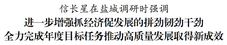 10月28日,省委書記信長(zhǎng)星到鹽城市鹽都區(qū)、東臺(tái)市調(diào)研。他強(qiáng)調(diào),四季度是全年決勝階段,要深入學(xué)習(xí)貫徹習(xí)近平總書記重要講話精神,錨定年度目標(biāo)任務(wù),堅(jiān)定信心、把握機(jī)遇,進(jìn)一步增強(qiáng)抓經(jīng)濟(jì)、促發(fā)展的拼勁、韌勁、干勁,推動(dòng)高質(zhì)量發(fā)展取得新成效,努力為全省發(fā)展大局貢獻(xiàn)更大力量。