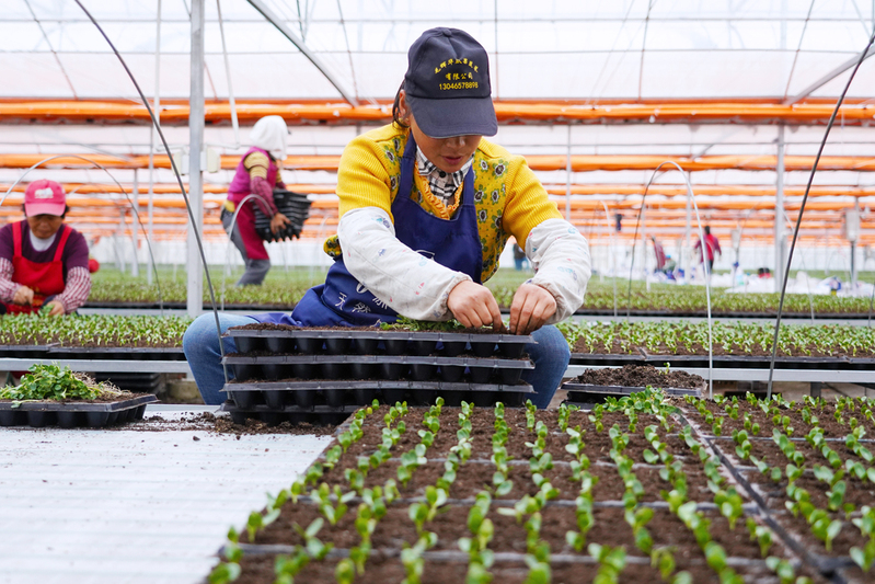 西瓜要想品質(zhì)好,種苗最重要。天氣漸寒,弶港農(nóng)場現(xiàn)代工廠化育苗基地內(nèi)暖意融融,在電氣化智能溫室大棚里,工人們正忙著整理苗床,首批300萬株西瓜種苗一片綠意盎然。智能恒溫大棚升溫平穩(wěn)、溫度均勻,有利于西瓜苗快速生長發(fā)育,出苗率可高達(dá)95%,移栽后成活力強(qiáng),不僅可供應(yīng)農(nóng)場周邊瓜農(nóng),還遠(yuǎn)銷浙江、安徽等地,全年可為瓜農(nóng)提供高品質(zhì)西瓜種苗1000萬株。