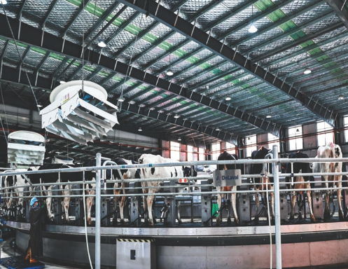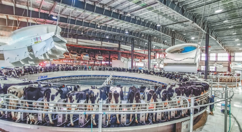 在連云港市東辛農(nóng)場(chǎng)萬(wàn)頭牧場(chǎng)內(nèi),兩臺(tái)80位轉(zhuǎn)盤式奶牛擠奶設(shè)備正在運(yùn)行,科學(xué)擠奶方式既降低了人力成本,更使擠奶效率大幅提高,全程機(jī)器操作,避免人工污染,從源頭保障奶品品質(zhì)。